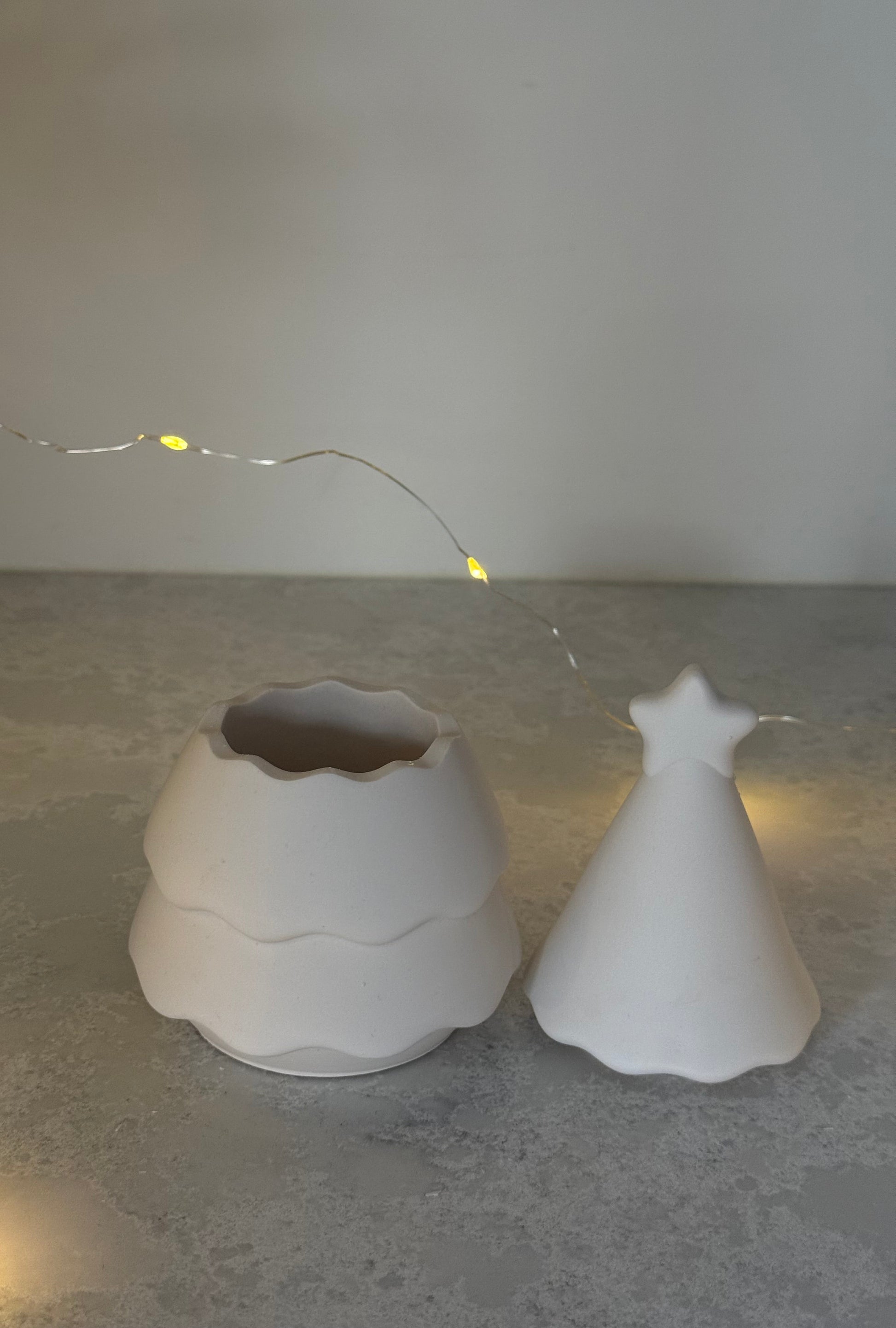 Bring a touch of minimal magic to your festive styling with our handmade stackable Christmas tree. The tree separates into two parts, making it both decorative and functional, perfect for hiding small treasures or simply displaying as a sculptural centrepiece. Style it on your shelves, coffee table, or as part of a Christmas display for a serene, understated festive look.